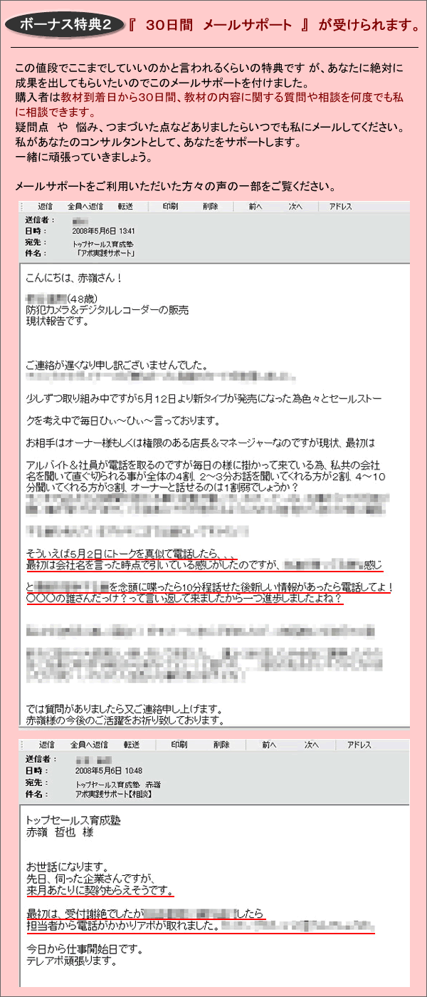 | 特典2 | 赤嶺による『無料30日間メールサポート』 |