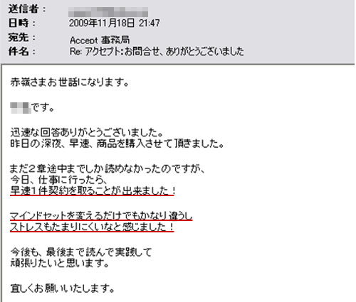 購入いただいた方々からの感想メールによって、私の予想以上に、